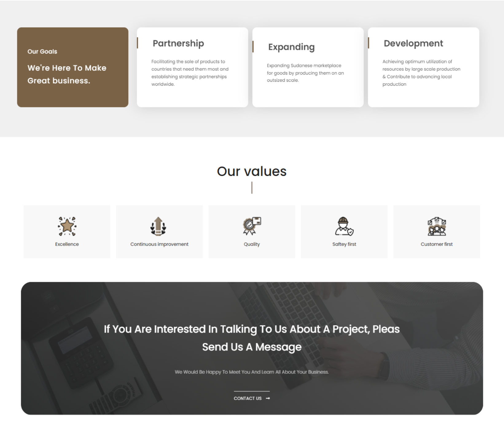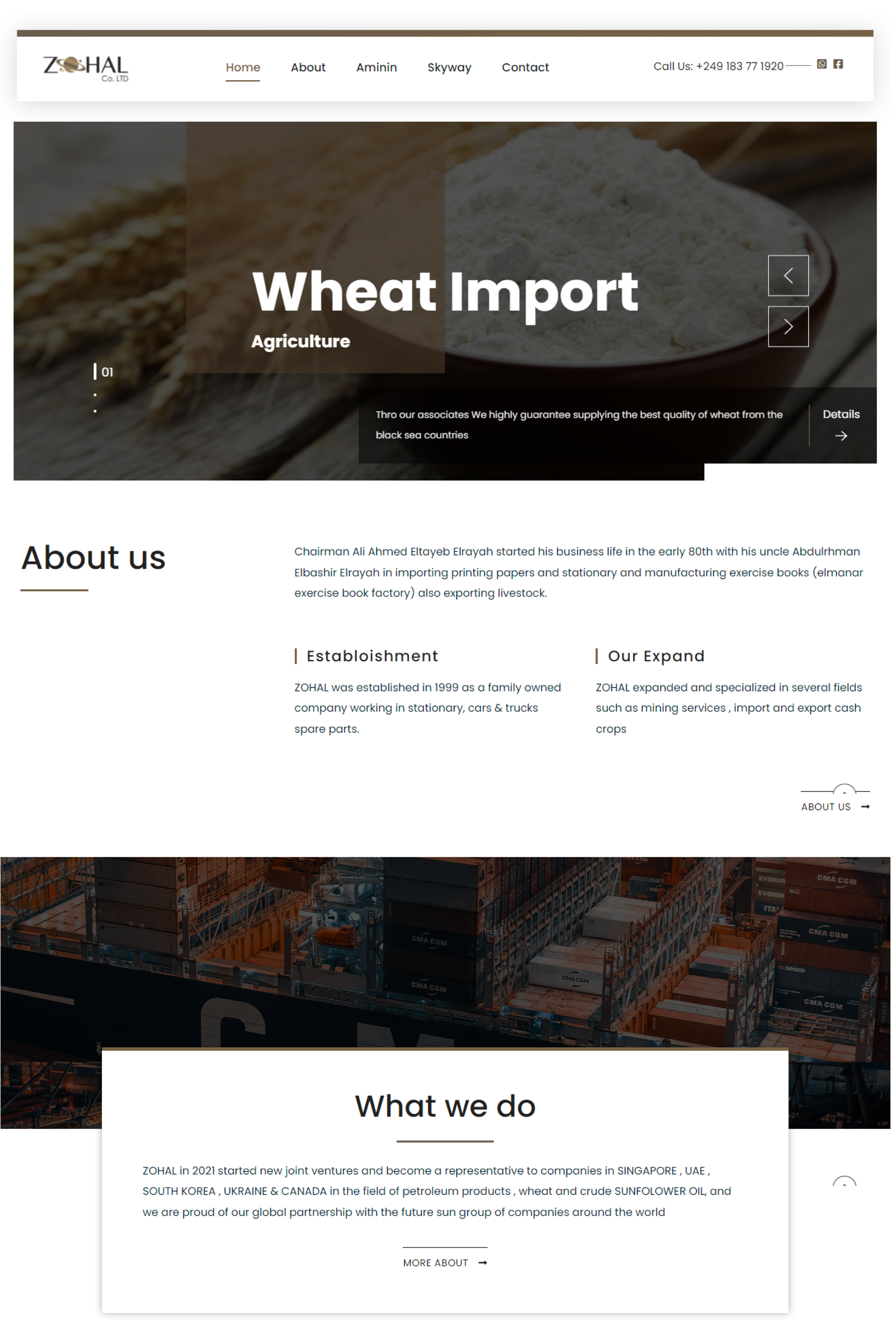 The export and import company website highlights products and global services with a professional, responsive design for an efficient client experience.